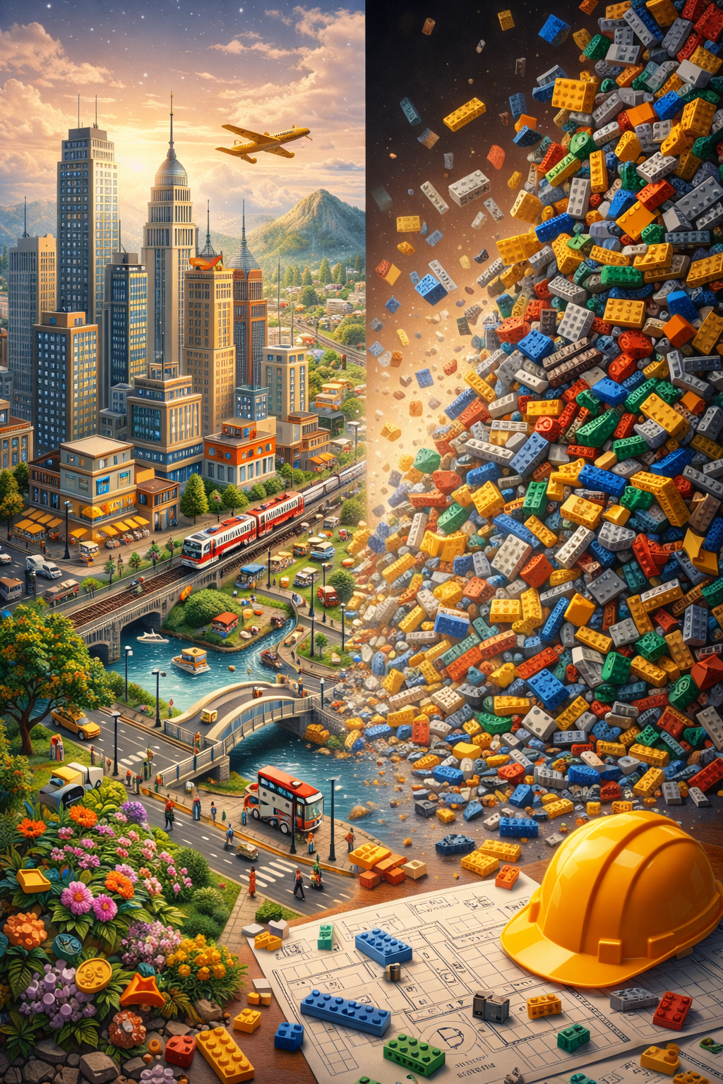 To understand this more clearly, imagine building an entire city using millions of Lego pieces. The city contains skyscrapers, roads, railway stations, airports, shopping centres, rivers, forests and homes. Thousands of people live and work there, traffic lights operate, and buses follow their routes.